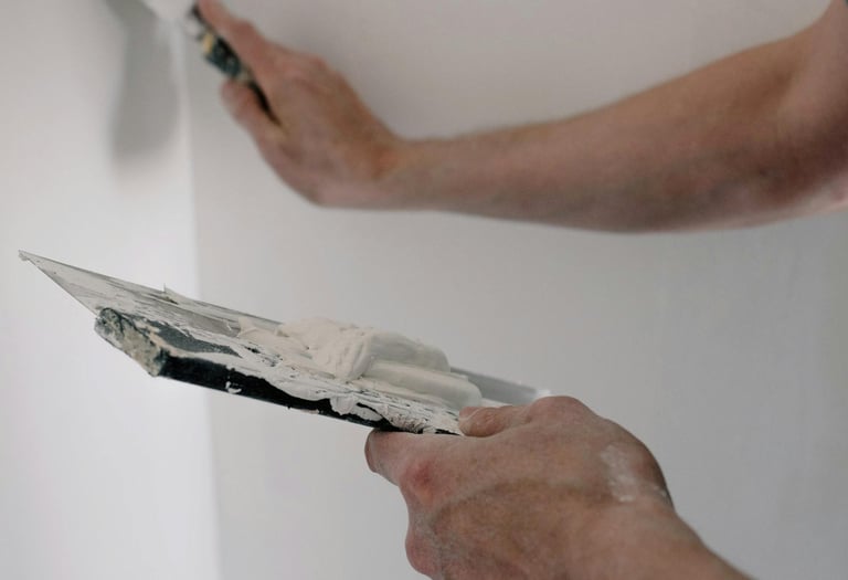 Taking care of holes, cracks, dents, and damaged spots in your walls or ceilings to get them looking smooth and ready for a coat of paint.